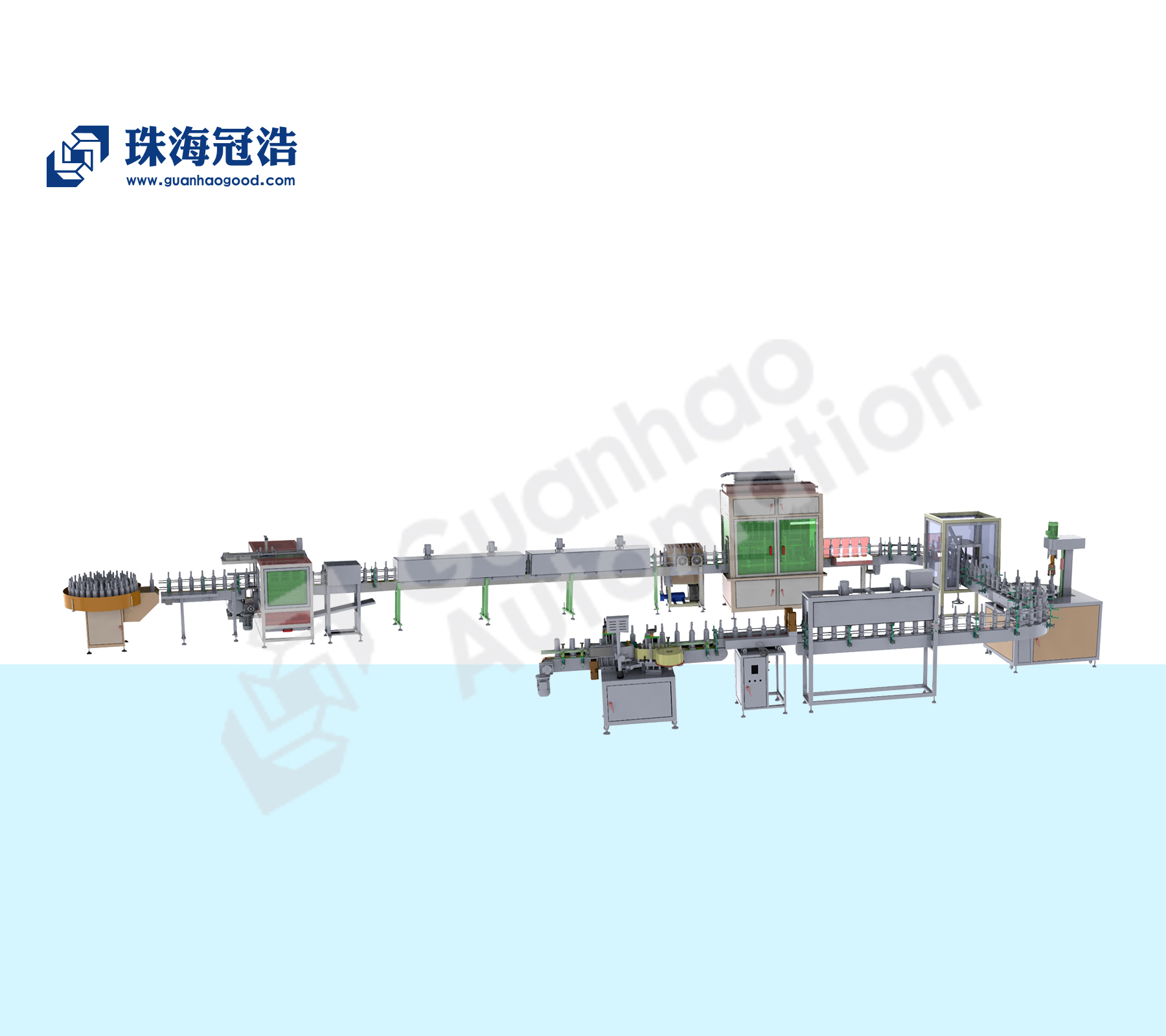 珠海冠浩機械洗瓶灌裝生產(chǎn)線(xiàn),是由高壓清洗吹水機和2頭灌裝機及轉盤(pán)組成,高壓清洗吹水機,主要是對瓶身的清洗,采用固定噴嘴噴洗,固定噴嘴吹水噴嘴,下倉為卸水槽,廢水排除槽外,清洗倉外裝有機玻璃防護罩。中間輸送采用不銹鋼枝托瓶及定位,不同瓶型更換內芯。清洗倉入瓶采用卡盤(pán)推瓶。清洗泵采用不銹鋼射流式自吸泵,揚程25米,流量2.4立方米/小時(shí)。