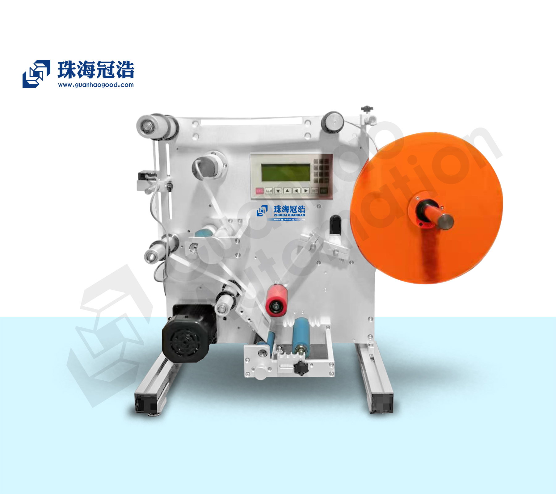核心工作原理:傳感器檢測到產(chǎn)品到位或腳踩發(fā)出產(chǎn)品到位信號,在適當位置送出一張標簽貼在產(chǎn)品預定位置上,產(chǎn)品轉動(dòng)中貼標和覆標,標簽貼完并覆好在產(chǎn)品上,一張標簽的貼附動(dòng)作完成;