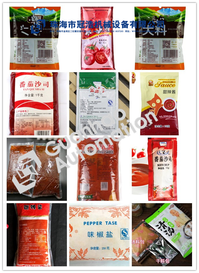 膏體、液體、醬類(lèi)、包裝機廣泛應用于黃豆醬、辣椒醬、花生醬、芝麻醬、橄欖菜、麻辣醬等顆粒醬料的袋裝灌裝。