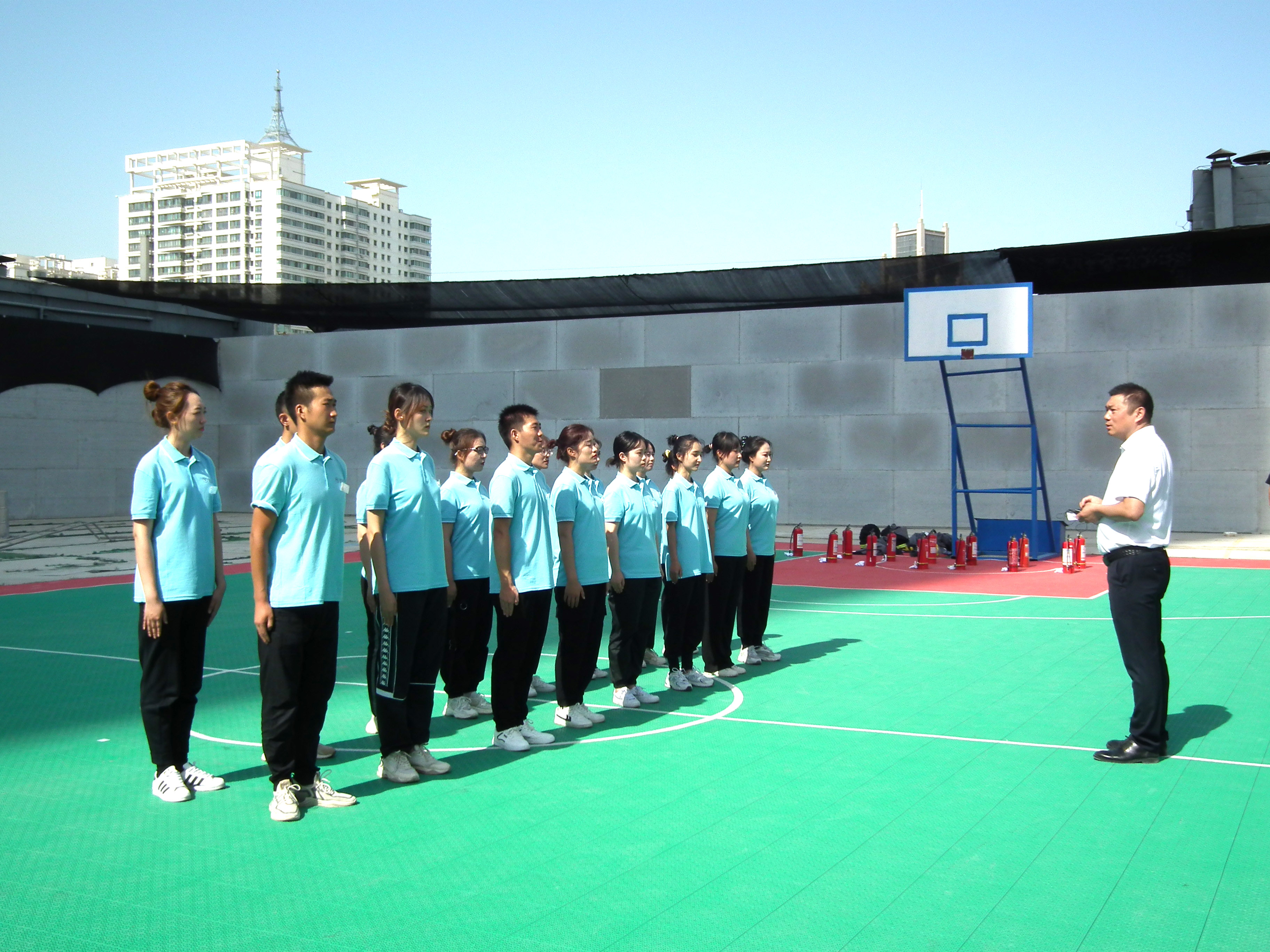 此次軍事匯報表演在常規(guī)隊列練習項目的基礎(chǔ)上融合消防器械操作,借助軍事化訓(xùn)練培養(yǎng)面對及克服困難的能力,弘揚百折不撓的鐵血精神,全面提升個人綜合素質(zhì),同時從管理培訓(xùn)生的職業(yè)生涯起點強化消防安全防范意識,提高火災(zāi)防范及自我保護能力。日后在工作崗位上作為管理人員能夠起到帶頭作用,切實履行消防安全工作的各項職責,認真落實各項消防安全制度和措施。