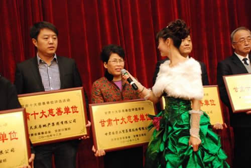 由甘肅省慈善總會和甘肅日報社聯(lián)合主辦、每日甘肅網(wǎng)獨家承辦的2010年甘肅省十大“慈善單位”、“慈善人物”頒獎典禮于2010年12月28日在蘭州舉行。經(jīng)過激烈角逐,甘肅國芳工貿(mào)集團股份有限公司榮幸地被評為“甘肅十大慈善單位”之一。