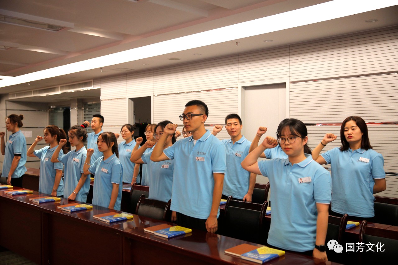 “今天成為國芳一員的我莊重宣誓:······我是朝氣蓬勃的國芳生力軍!我是滿懷豪情的新時代國芳人!‘’最后伴隨著新生力量的宣誓,國芳集團2020屆管理培訓生入職儀式正式落下帷幕。